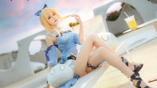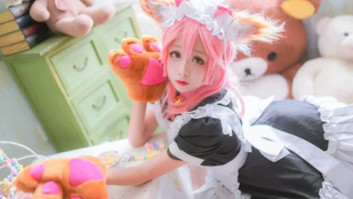 有次在群里看到一个粉丝发图,一张是穿旗袍的背影,站在老式木楼前,光从屋檐斜照下来,打在她肩头。另一张是海边的短装造型,她坐在栈道边晃脚,发尾被风吹得微微扬起。我一眼认出是三度69,不是因为水印,而是那种熟悉的拍摄节奏——构图不急,光影自然,动作像是从角色生活里截出来的瞬间。 她最早是靠《FGO》里的玉藻前出圈的。那套旗袍造型,领口到裙摆的线条都很贴身,配高跟鞋,腿线拉得很长。她没用太多后期,主要靠姿势和眼神撑画面。比如回眸那个角度,下巴微收,眼睛从下往上抬,刚好把狐系角色的灵动感带出来。这组图后来被很多人拿去当壁纸…
